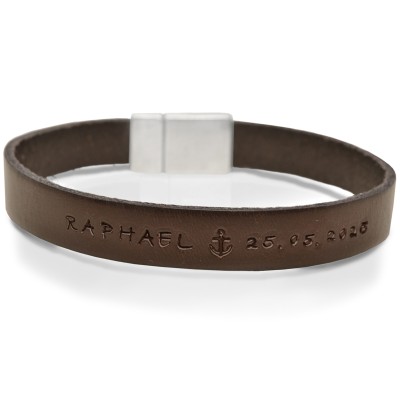 STOLZER PAPA Lederarmband mit Gravur Dieses ganz besondere Armband für Männer mit Gravur besteht aus einem Lederband und einem Silberelement. Das rechteckige Silberelement ist in das Lederband eingefasst und kann mit einem Namen und...