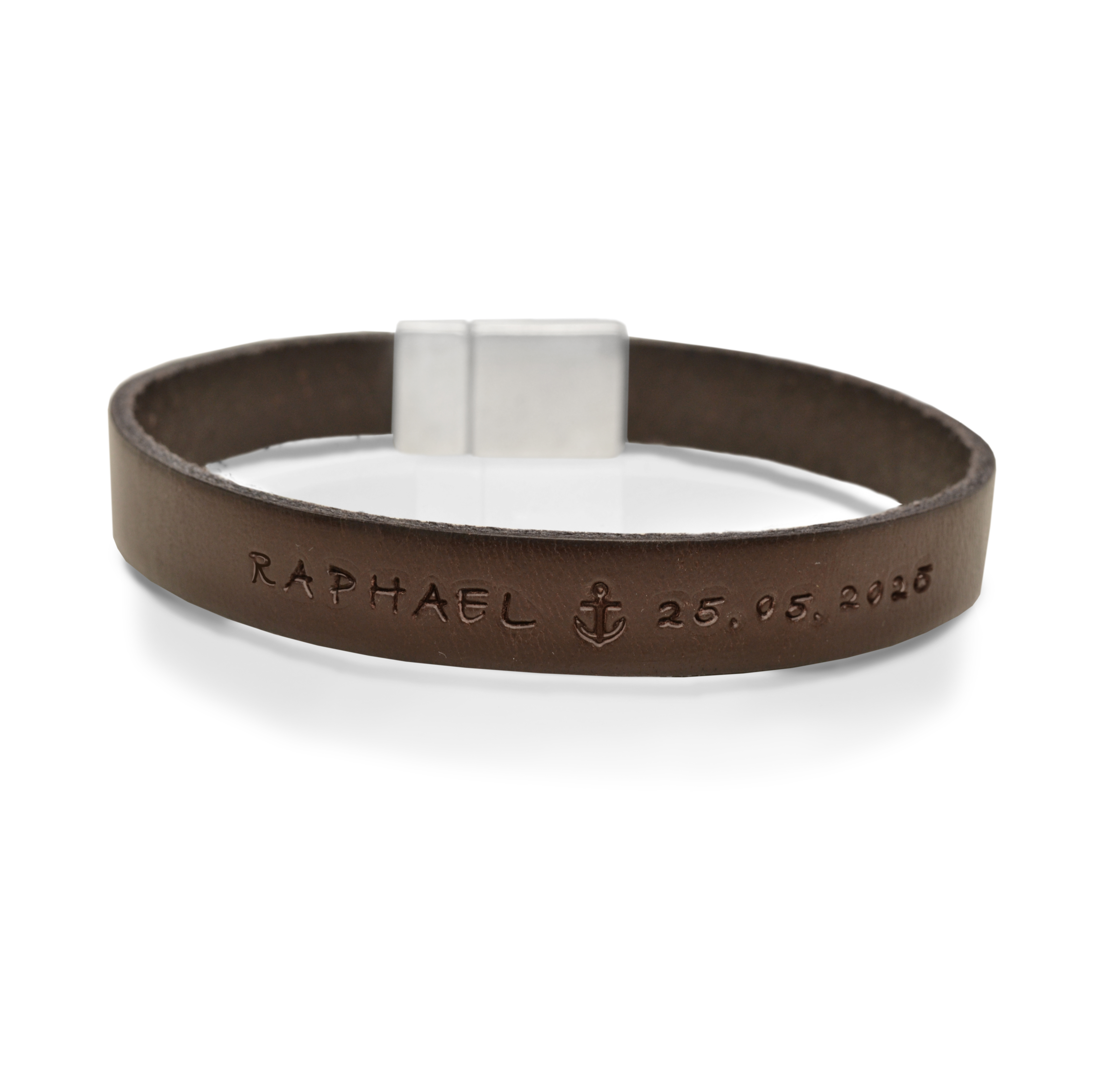 | Dieses dezente Armband mit Personalisierung ist ein besonderes Geschenk zur Konfirmation für Jungs. Das Lederarmband aus hochwertigem Flachleder kann mit dem Namen des Konfirmanden und dem Datum der Konfirmation individualisiert werden. Zwischen Name und Datum ist ein Ankersymbol geprägt. Das Armband wird mit einem Magnetverschluss geschlossen. Wie ermittle ich die richtige Armbandlänge? |